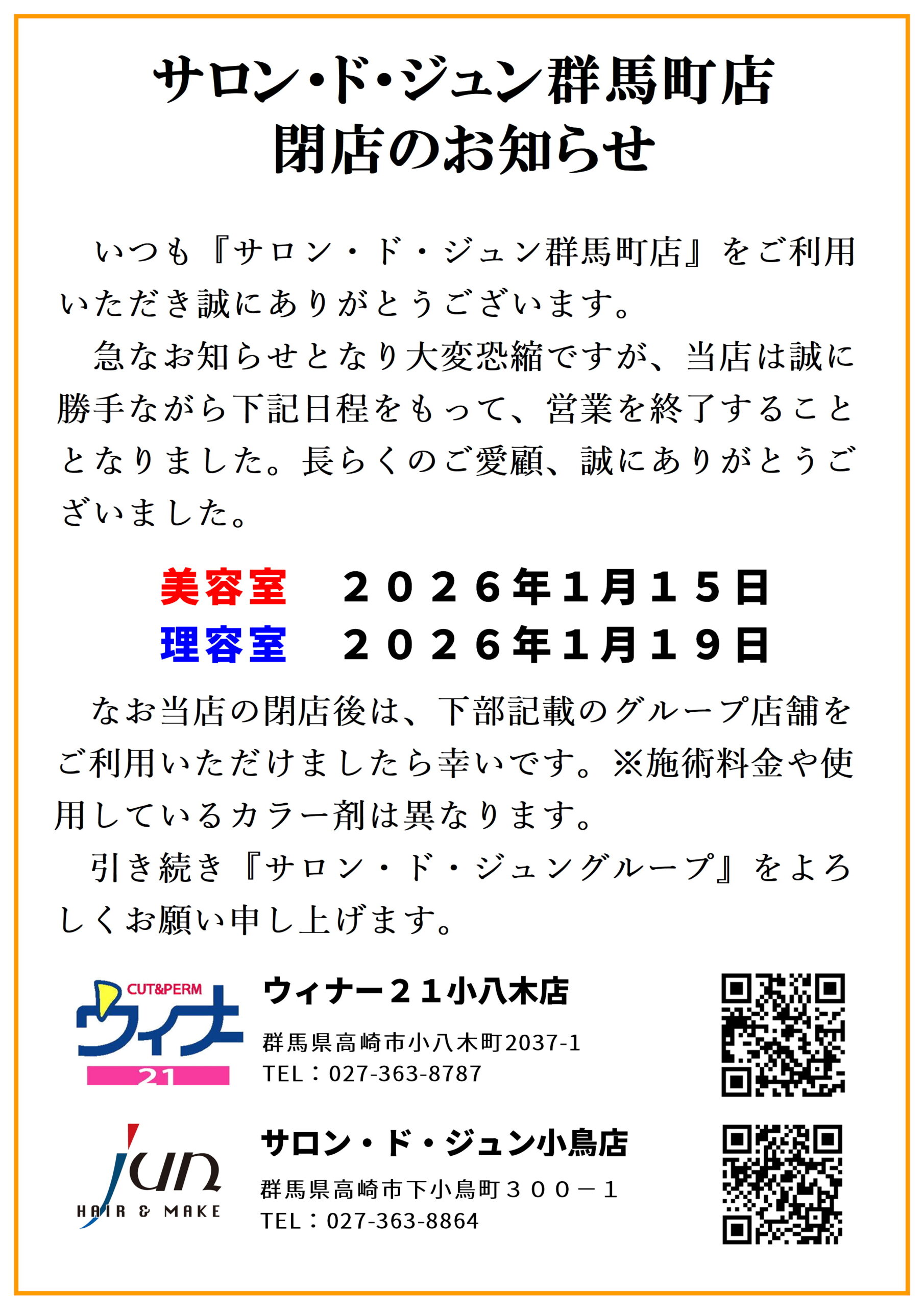【閉店】サロン・ド・ジュン 群馬町店