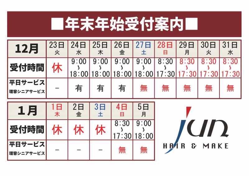 (パーマ・カラーは17:00まで)